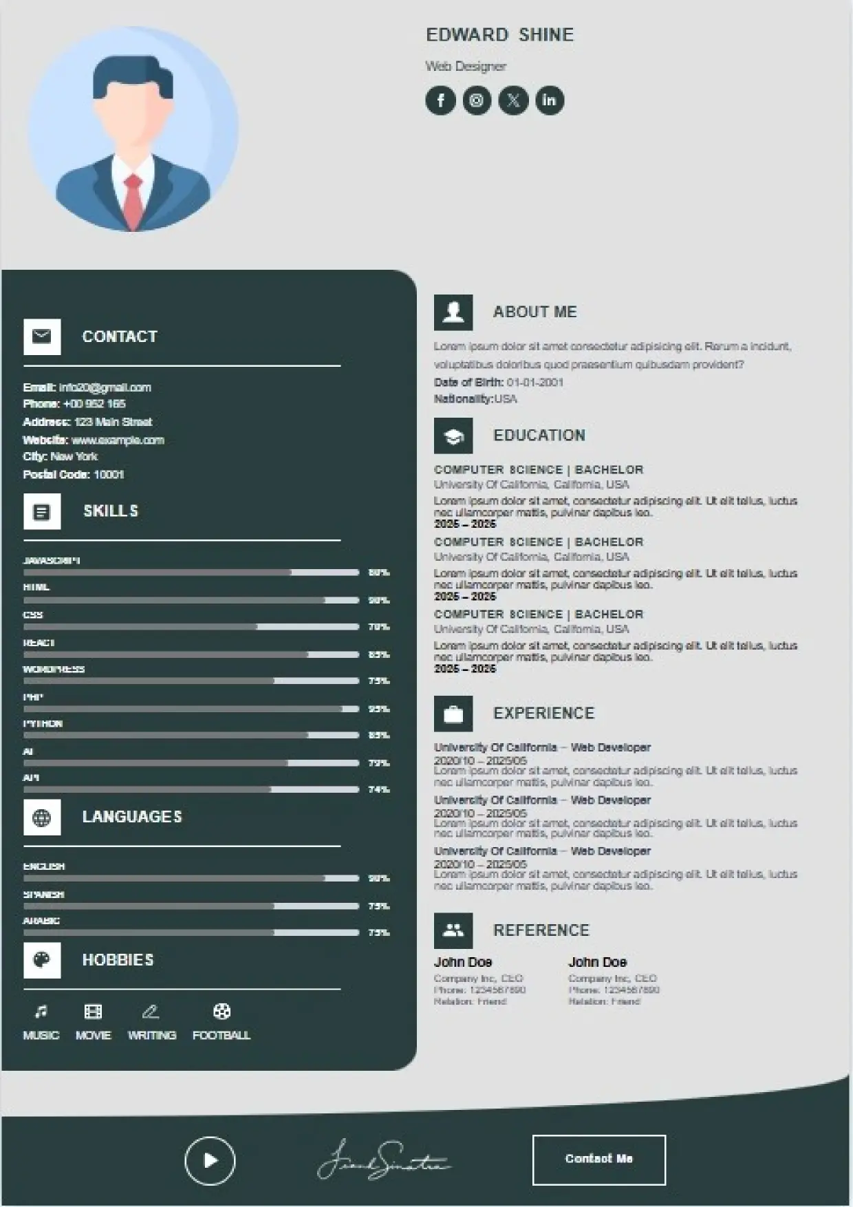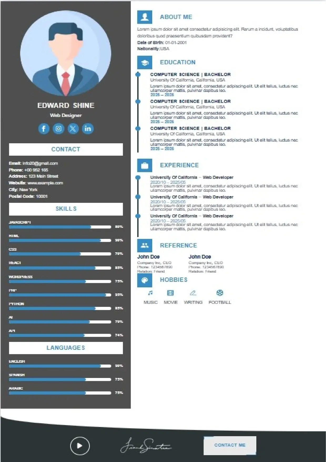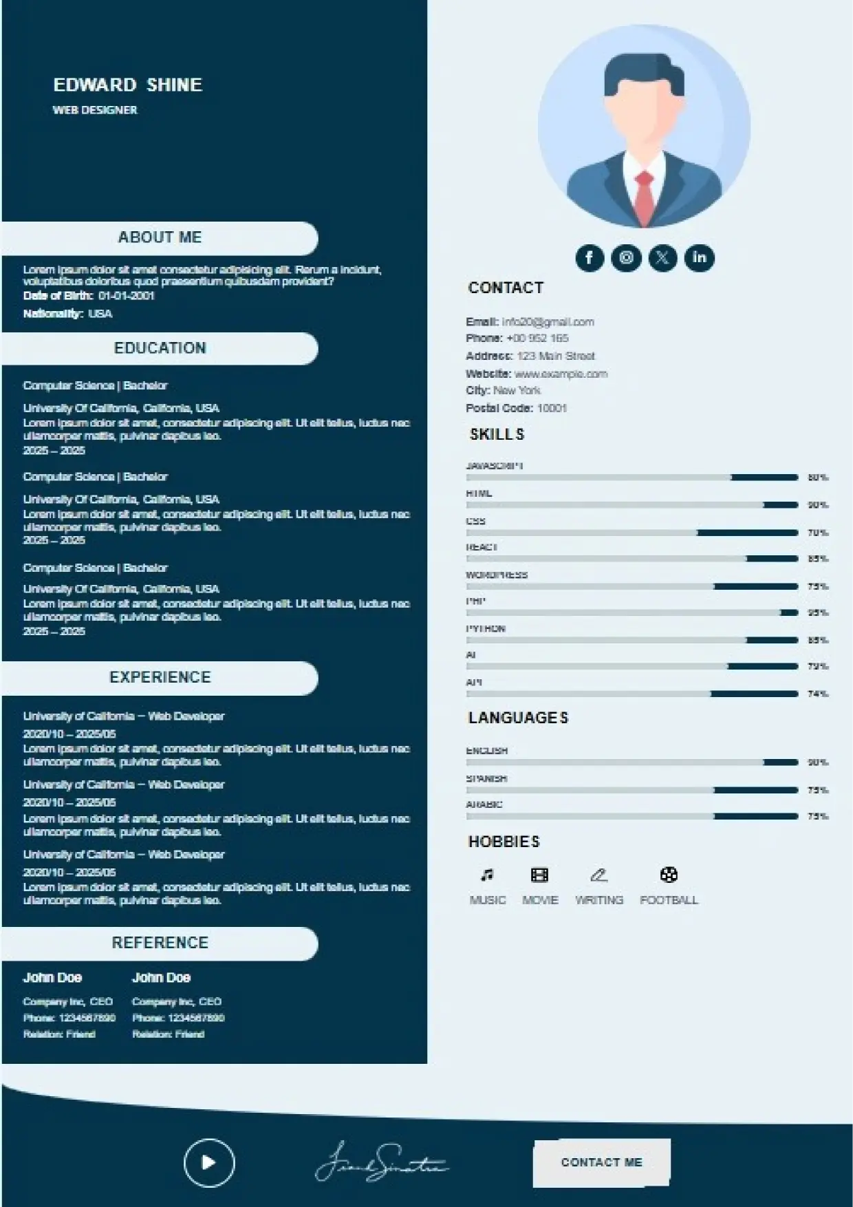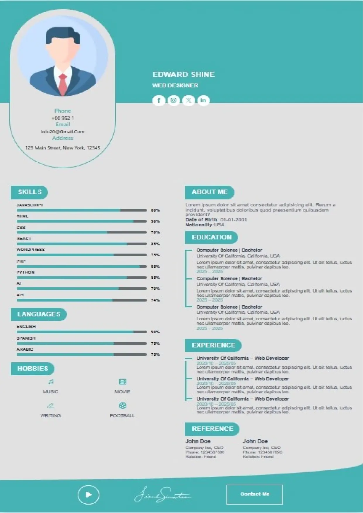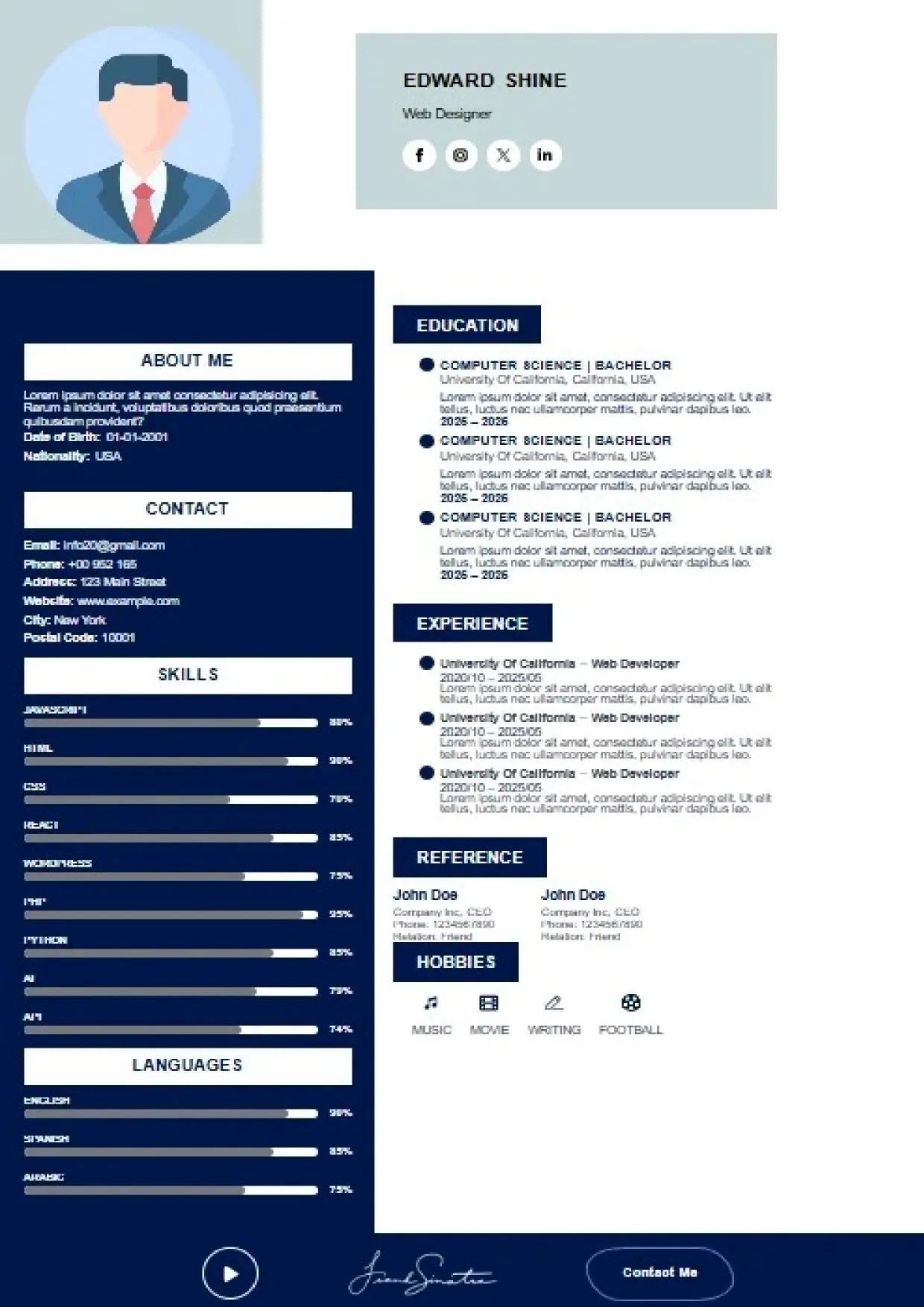 What the System Supports The DFBooking CV Builder includes functionality designed to support real hiring workflows: 26+ professional CV templates Aligned with US, UK, EU, Canada, and international hiring standards. ATS-safe formatting across all templates Clean structure, correct headings, and parsing-friendly layouts. AI-assisted cover letter generation Job-specific, professional cover letters written to match recruiter expectations — not generic outputs. Integrated digital signature support Add a professional signature directly within your CV where appropriate. Social and professional profile links Include LinkedIn, portfolios, websites, or GitHub profiles for verification and credibility. Guided content sections Each section is structured to prompt relevant information recruiters actually scan for. Instant download and reuse One CV system that can be adapted across roles and markets without rebuilding from scratch.