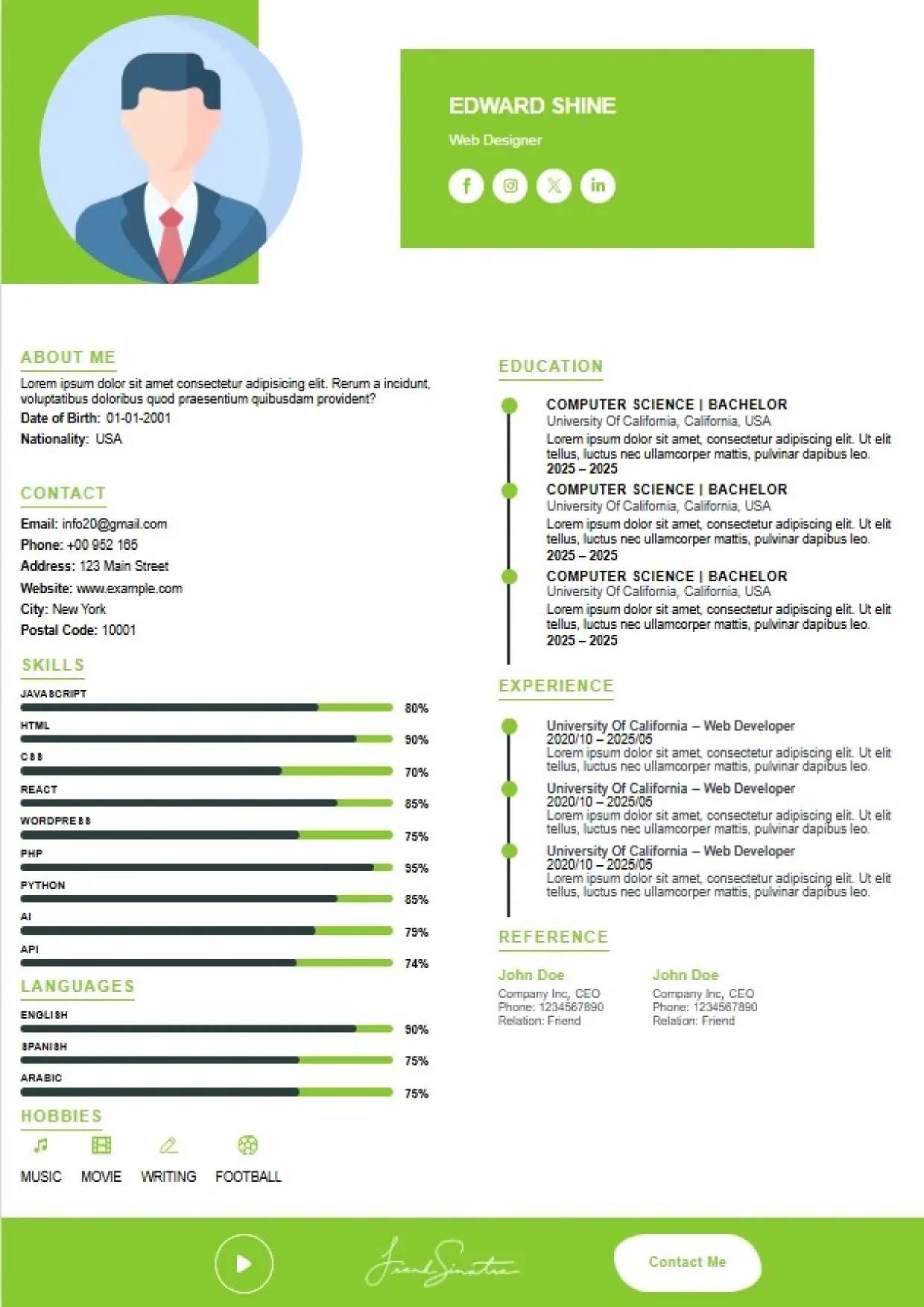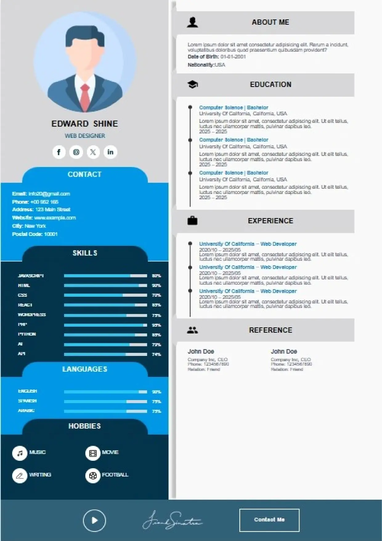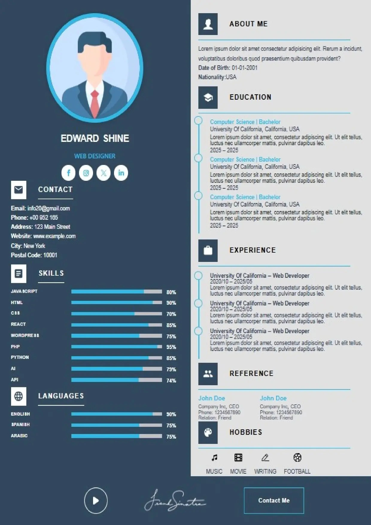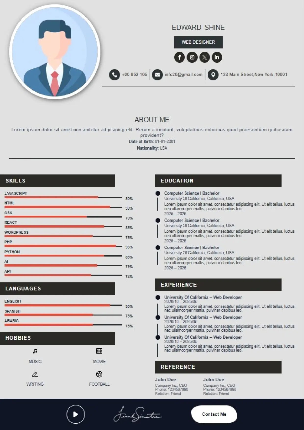 What the System Supports The DFBooking CV Builder includes functionality designed to support real hiring workflows: 26+ professional CV templates Aligned with US, UK, EU, Canada, and international hiring standards. ATS-safe formatting across all templates Clean structure, correct headings, and parsing-friendly layouts. AI-assisted cover letter generation Job-specific, professional cover letters written to match recruiter expectations — not generic outputs. Integrated digital signature support Add a professional signature directly within your CV where appropriate. Social and professional profile links Include LinkedIn, portfolios, websites, or GitHub profiles for verification and credibility. Guided content sections Each section is structured to prompt relevant information recruiters actually scan for. Instant download and reuse One CV system that can be adapted across roles and markets without rebuilding from scratch.