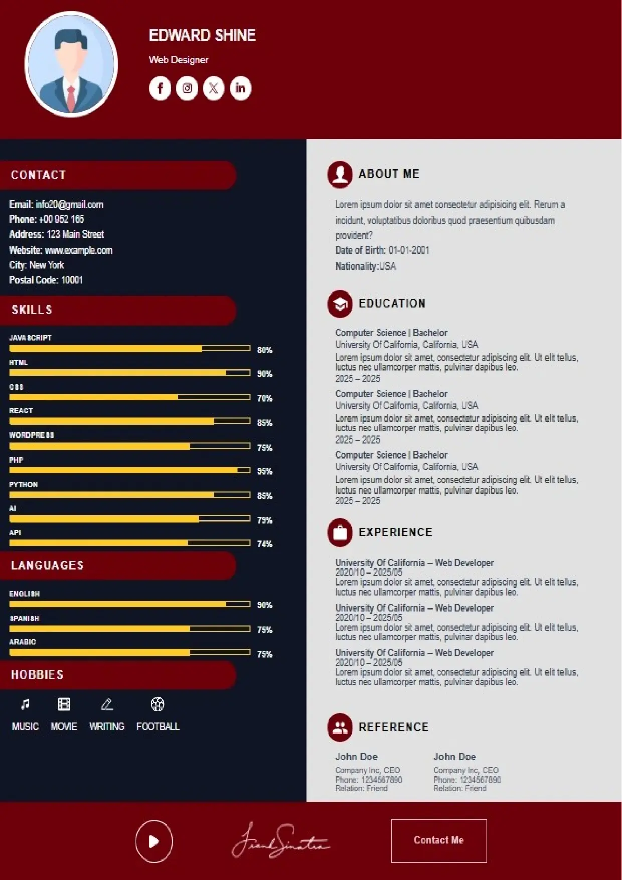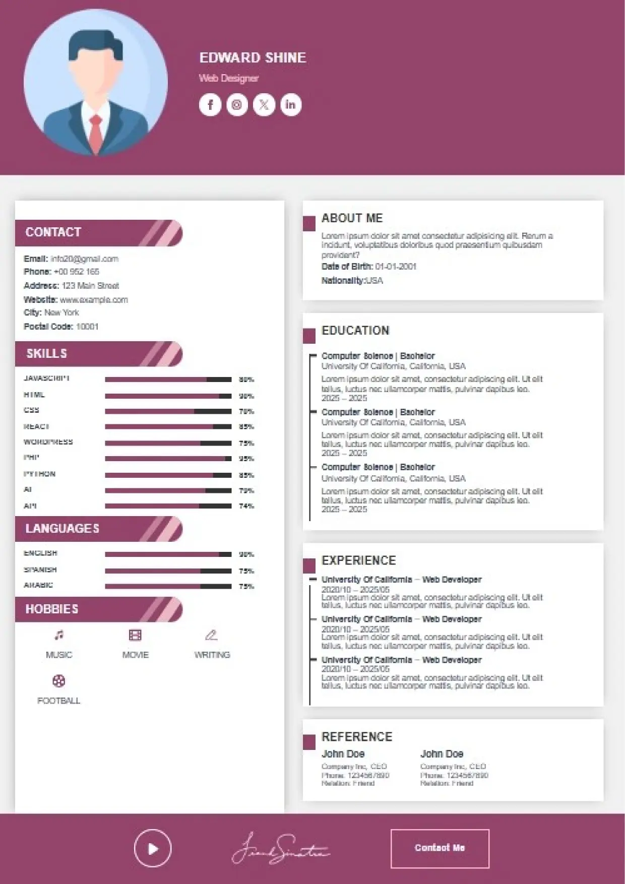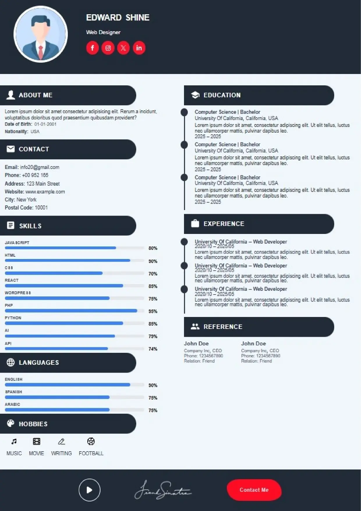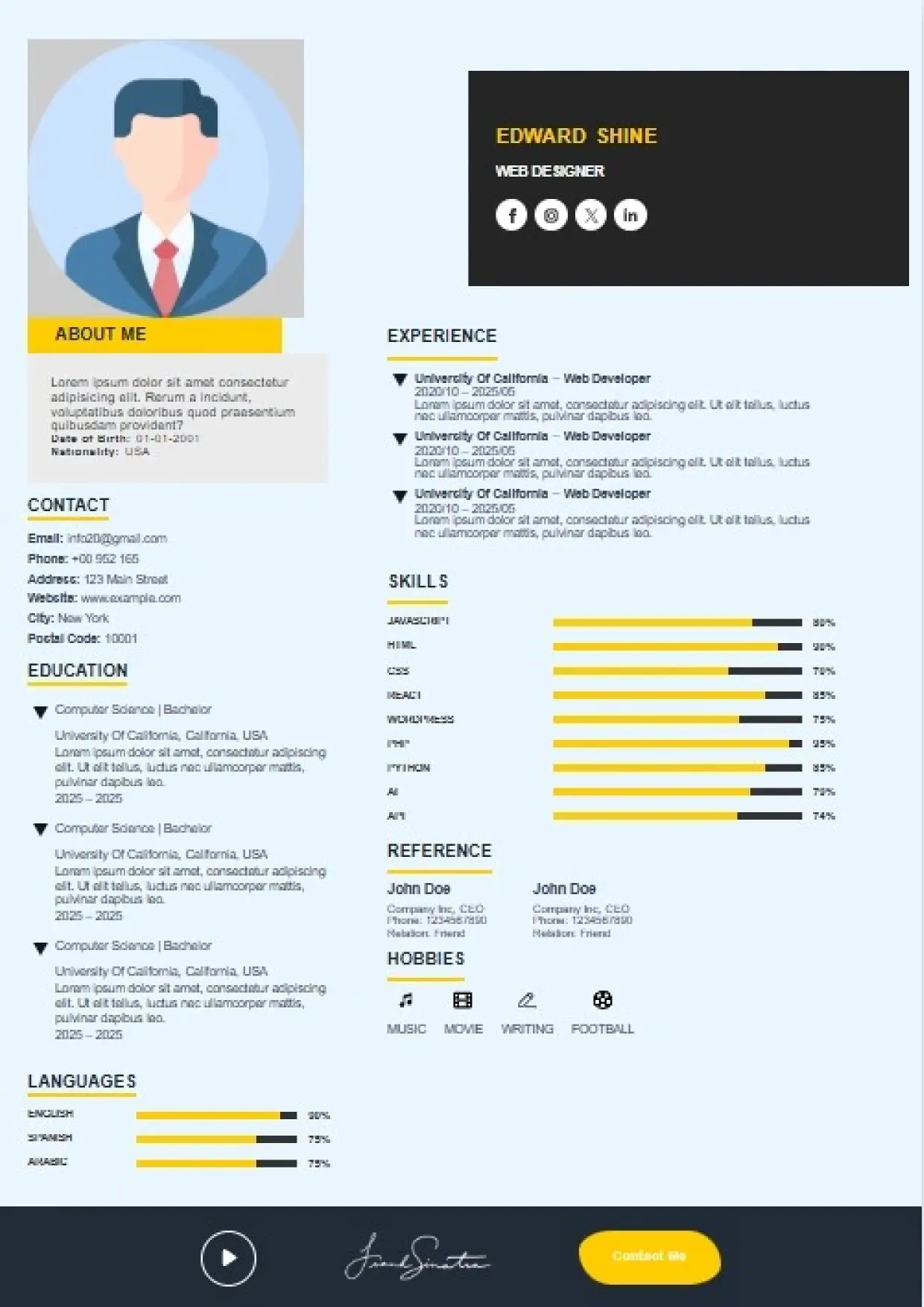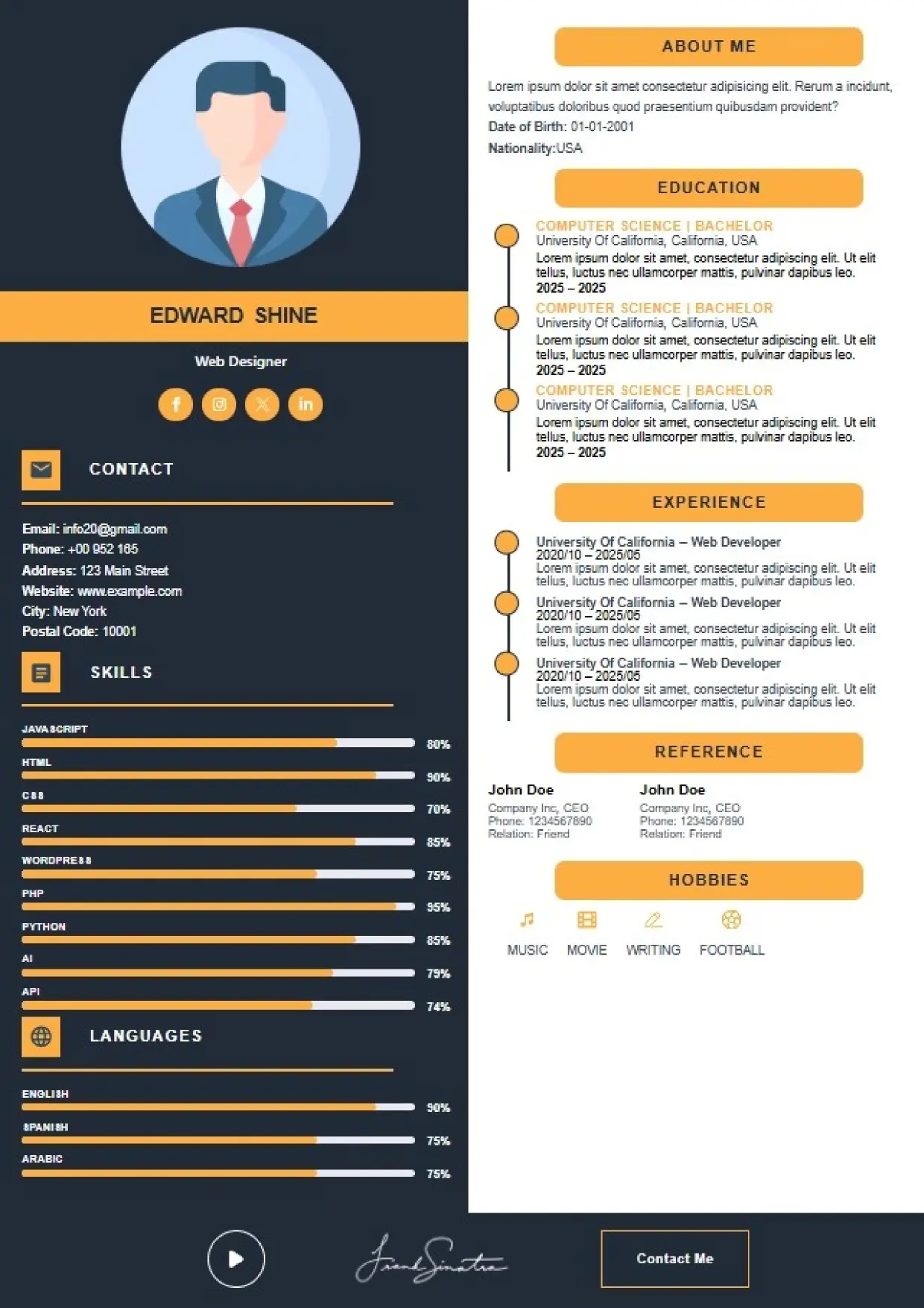 What the System Supports The DFBooking CV Builder includes functionality designed to support real hiring workflows: 26+ professional CV templates Aligned with US, UK, EU, Canada, and international hiring standards. ATS-safe formatting across all templates Clean structure, correct headings, and parsing-friendly layouts. AI-assisted cover letter generation Job-specific, professional cover letters written to match recruiter expectations — not generic outputs. Integrated digital signature support Add a professional signature directly within your CV where appropriate. Social and professional profile links Include LinkedIn, portfolios, websites, or GitHub profiles for verification and credibility. Guided content sections Each section is structured to prompt relevant information recruiters actually scan for. Instant download and reuse One CV system that can be adapted across roles and markets without rebuilding from scratch.